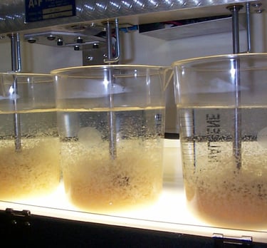 El "jar test" o prueba de jarras es un ensayo de laboratorio que simula los procesos de coagulación y floculación que ocurren en una planta de tratamiento de aguas. Se utiliza para determinar la dosis óptima de coagulantes y floculantes necesarios para eliminar partículas suspendidas, turbidez y contaminantes del agua, tanto potable como residual.